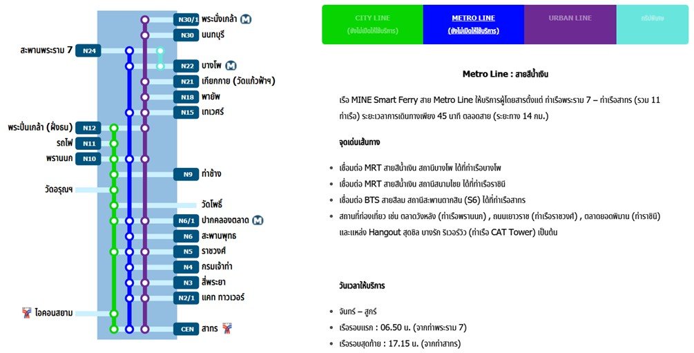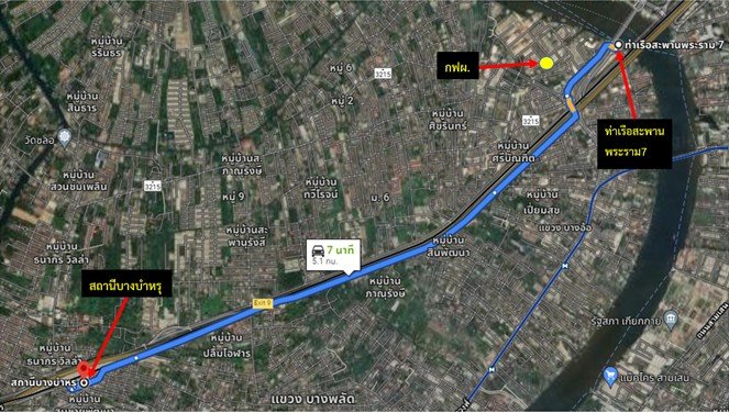 In the future, the route is designed to support the connection with suburban trains (Red Line), i.e. the Blue Line (Metro Line), Sathorn Pier – Rama 7 Bridge Pier, which can be connected from Rama 7 Bridge Pier to Bang Bamru Station of the Suburban Railway (Red Line) takes about 6 minutes (distance 5.1 km).